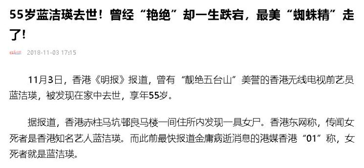 最终,55岁的蓝洁瑛无依无靠,在家中去世多日都无人发现。