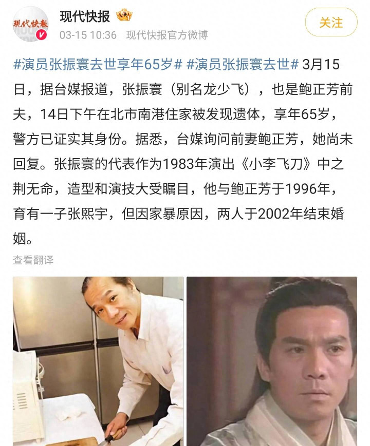 2025年3月14日,张振寰在家陈尸多日被发现,享年65岁。